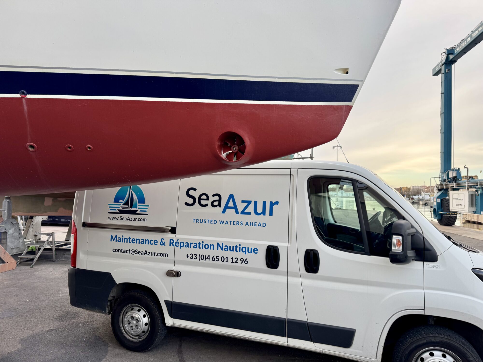 Afin de faciliter les manœuvres dans les ports et les espaces restreints, un propulseur d’étrave a été installé à bord. Après une étude précise de la coque, l’intervention a permis de mettre en place l’ensemble du système, de la découpe à la pose en passant par le câblage électrique. Résultat : une manœuvrabilité grandement améliorée et une navigation plus sereine, même dans les situations les plus délicates.