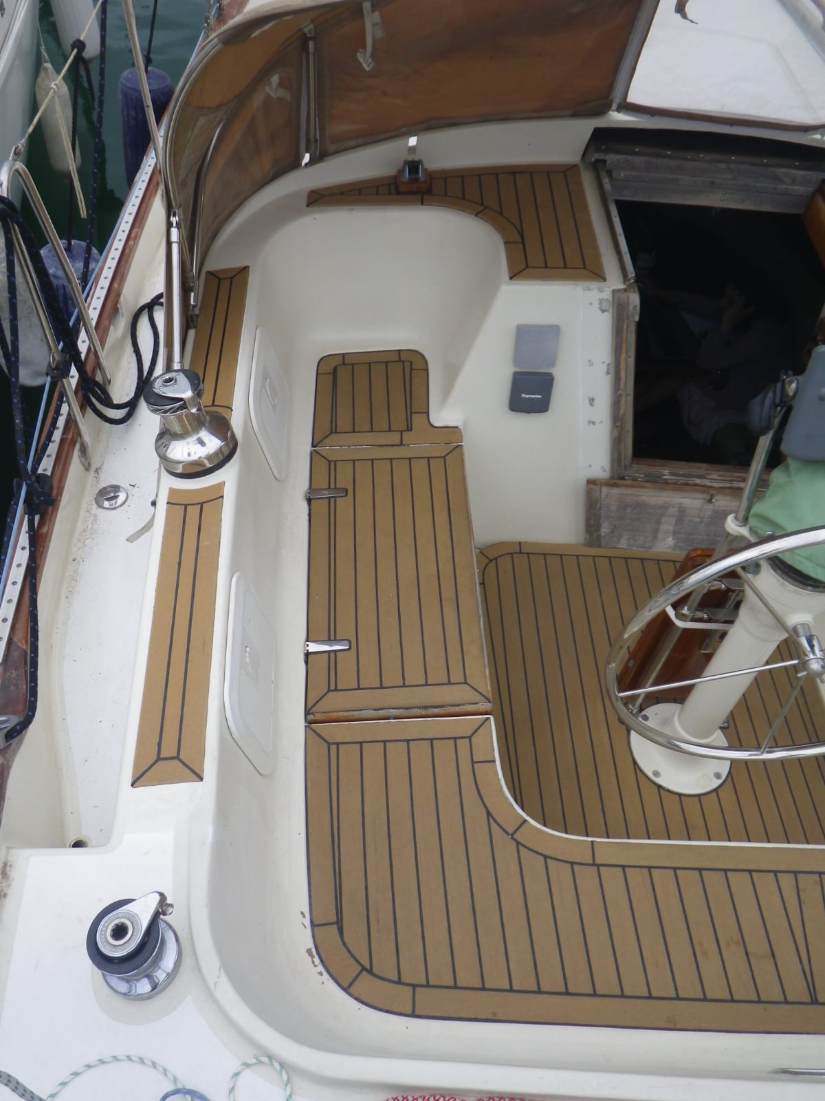 Le propriétaire souhaitait moderniser l’apparence de son bateau tout en choisissant une solution pratique et durable. L’objectif principal était d’améliorer l’esthétique du pont grâce à un revêtement élégant imitant le teck naturel, tout en facilitant son entretien au quotidien. Le teck synthétique offre en effet une excellente résistance aux intempéries et ne nécessite aucun traitement particulier, contrairement au bois véritable.